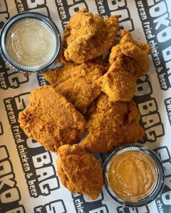 A must visit in Phoenixville! Soko Bag is Korean inspired, specializing in fried chicken. But Colonel Sanders didn’t just buy a ticket to Seoul. Three varieties of fried chicken — bamboo salt, ghost cheddar BBQ and white cheddar snow — are offered, all very crispy. Plus a variety of dipping sauces. And don’t forget the yummy menu or the beer list, offering about nine beers, including blonde, hazy and West Coast IPAs, American and Korean lager, chocolate, vanilla or sour jawn. Enjoy them all while watching Philly sports on high def TVs. Cheers and cheers!